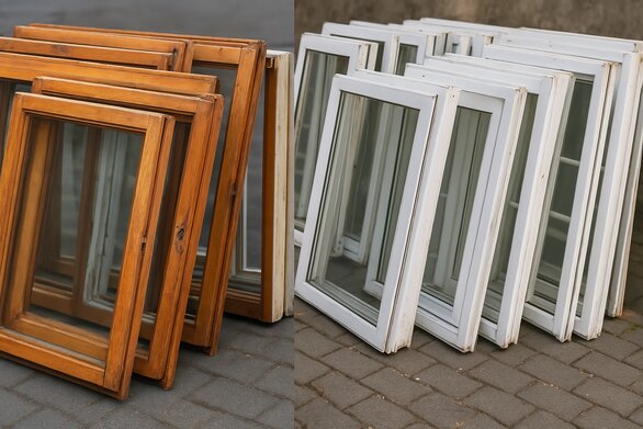 Altfenster aus Holz und PVC