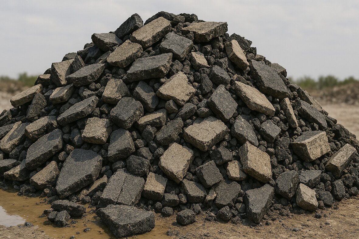Asphalt ist ein Gemisch aus Gesteinskörnungen und Bitumen als Bindemittel, wobei die Zusammensetzung einen variierenden Hohlraumanteil aufweist. Je nach Zusammensetzung wird Asphalt granuliert und in neuen Straßenbelägen wiederverwendet.