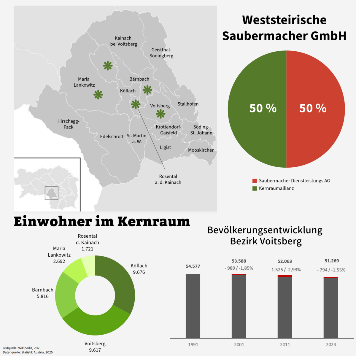 Die Weststeirische Saubermacher GmbH übernimmt für die fünf Kernraumgemeinden Köflach, Voitsberg, Bärnbach, Rosental an der Kainach und Maria Lankowitz die Haushaltssammlung von folgenden Fraktionen: